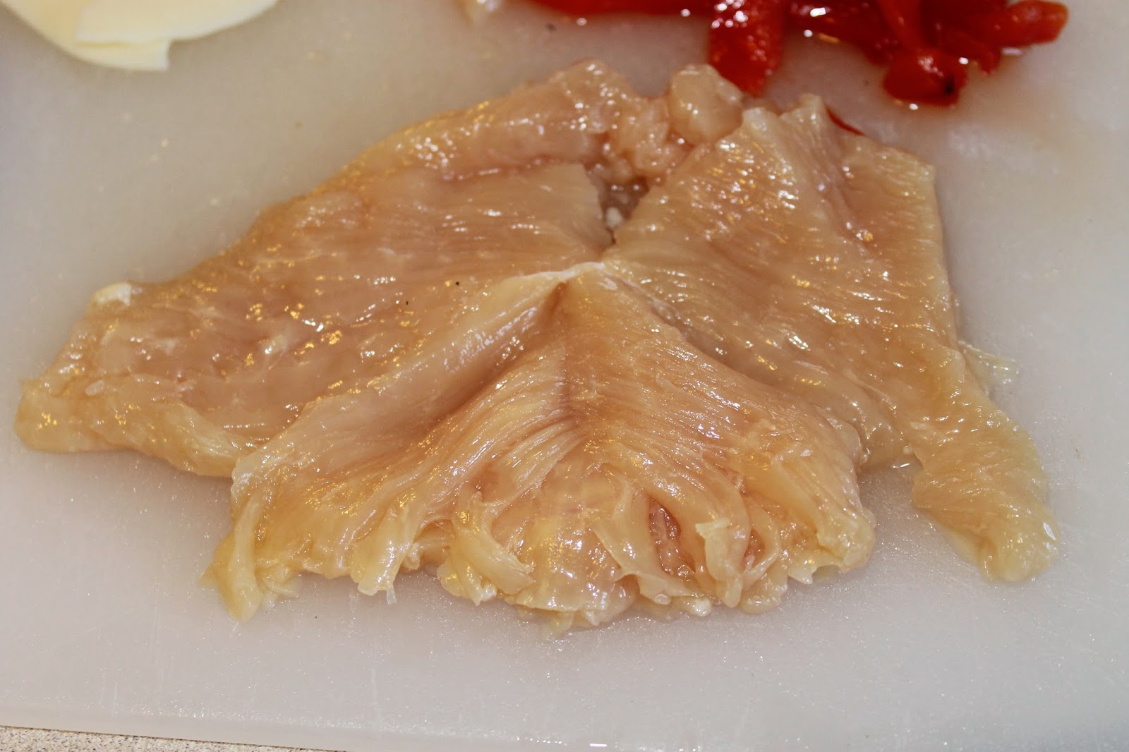 Then I butterflied the chicken breasts. (Cutting them almost in halfto make them thinner.)